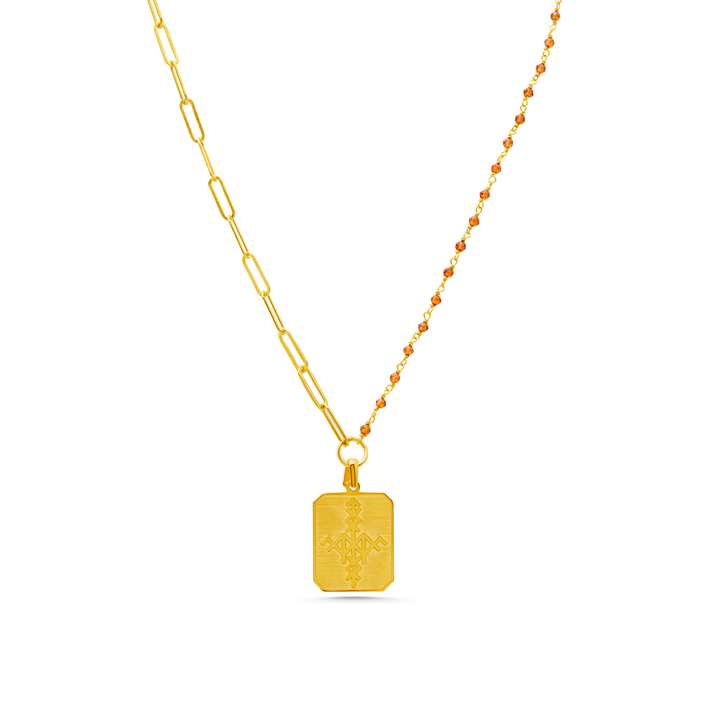 Heimen sembolü taşıyan bu özel zincir kolye, hayatınıza bolluk ve bereket frekansını davet etmek için tasarlandı. Rune tılsımı, maddi akışınızı desteklerken tıkanan enerji kanallarını açmaya yardımcı olur. Zincirde kullanılan Sitrin taşı ise “tüccar taşı” olarak bilinir ve bolluk enerjinizi büyütür. Özgüven, cesaret ve içsel huzuru destekleyen bu taş; aynı zamanda Mide Çakrası ile bağlantılıdır ve duygusal-sindirimsel denge sağlar. Hem spiritüel niyet taşıyan hem de modern stilinize uyum sağlayan bu kolye, enerji alanınızı şifalandırırken zarif görünümünüzü tamamlar.